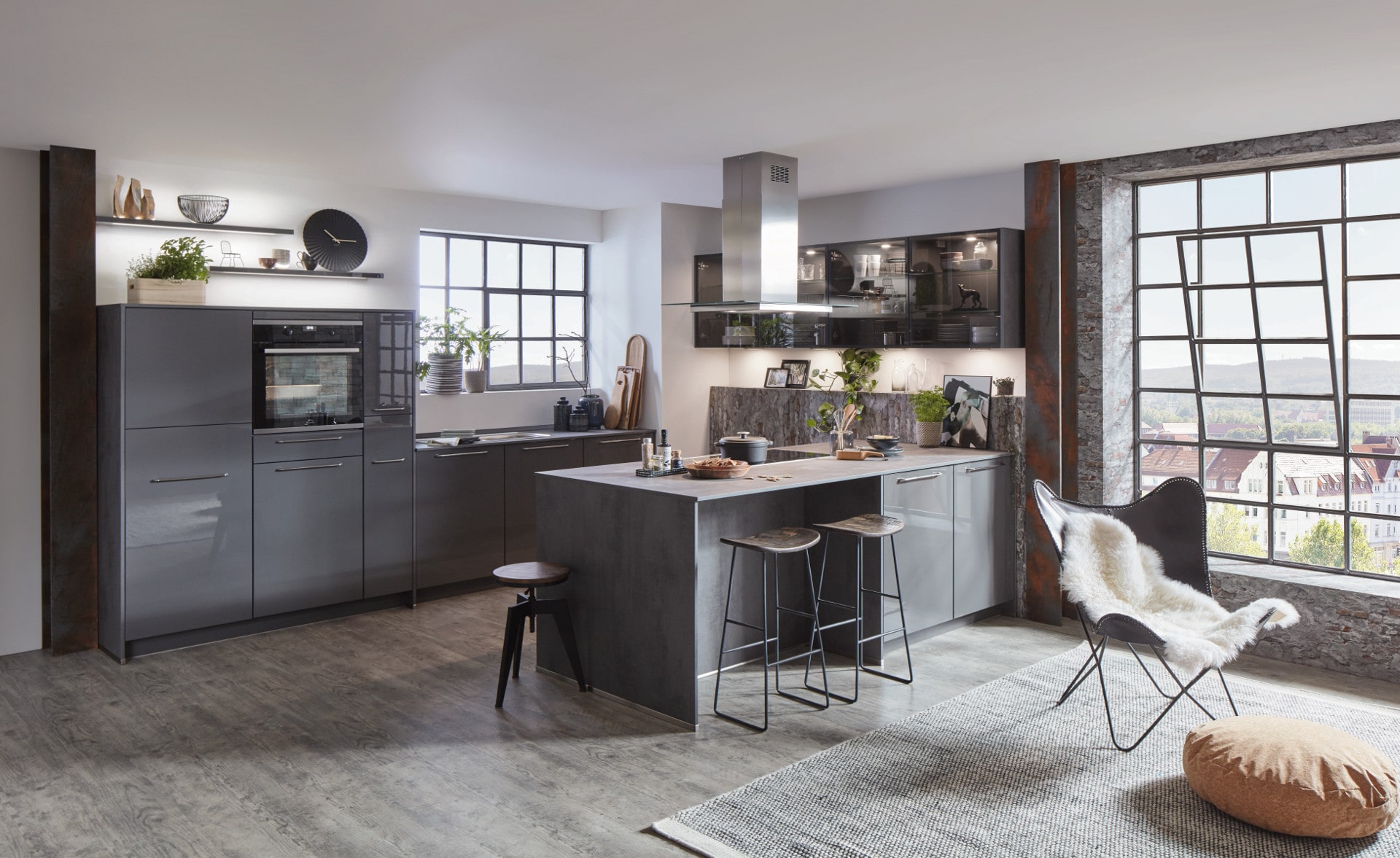 Кухня с уникальным и по-настоящему динамичным дизайном. Она тонко отражает дух времени! Здесь и аскетизм конструктивизма начала 20-го и независимость цифровой эпохи, новых идей и ценностей… Для такого дизайна трудно подобрать аналогии в прошлом.