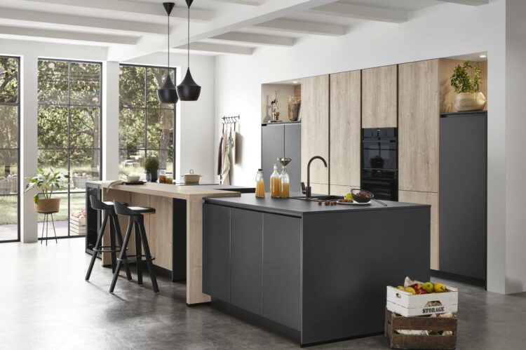 Кухня в заміському будинку – це не просто місце для приготування їжі. Це емоційне серце будинку. Вікна, що виходять у сад, наповнять кухонний простір природним світлом та створять відчуття єднання з природою. Просторі робочі поверхні, місткі шафи та сучасна техніка дозволять комфортно готувати улюблені страви, насолоджуючись обстановкою. Простір кухні може бути об’єднаний із вітальнею, створюючи легке, відкрите планування, що чудово підходить для сімейних посиденьок. Ця концепція ідеальна для тих, хто цінує традиції, але не хоче відмовлятися від сучасних зручностей та інноваційних технологій.